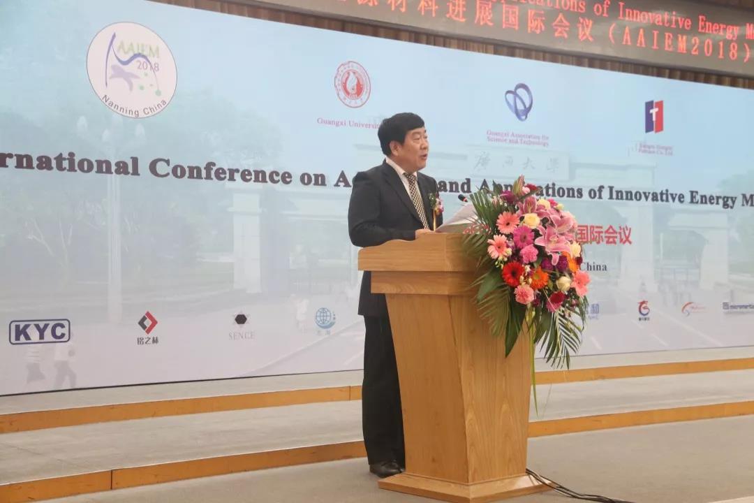 由广西科协党组书记、副主席纳翔出席会议致辞,致辞中表示,“第八届创新能源材料进展国际会议”的举办,正是瞄准新形势下经济社会发展重大需求,以“新能源材料”为主题,推动新能源材料领域的交流合作与应用,创新合作务实,实现互利共赢。希望创新能源研究科技工作者结合工作实际,在国家各项政策指导下,充分发挥科技人才优势,把握时机,将能源挑战转变为能源创新的动力,为国际创新能源事业做贡献。
